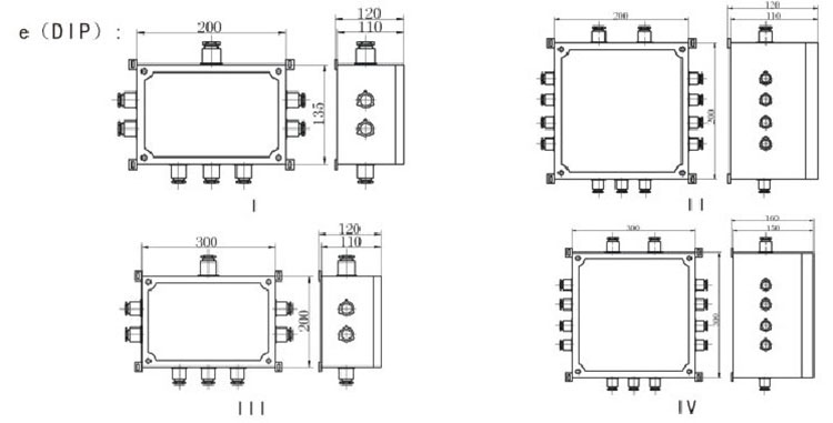 BJX防爆接线箱进出线口选择: